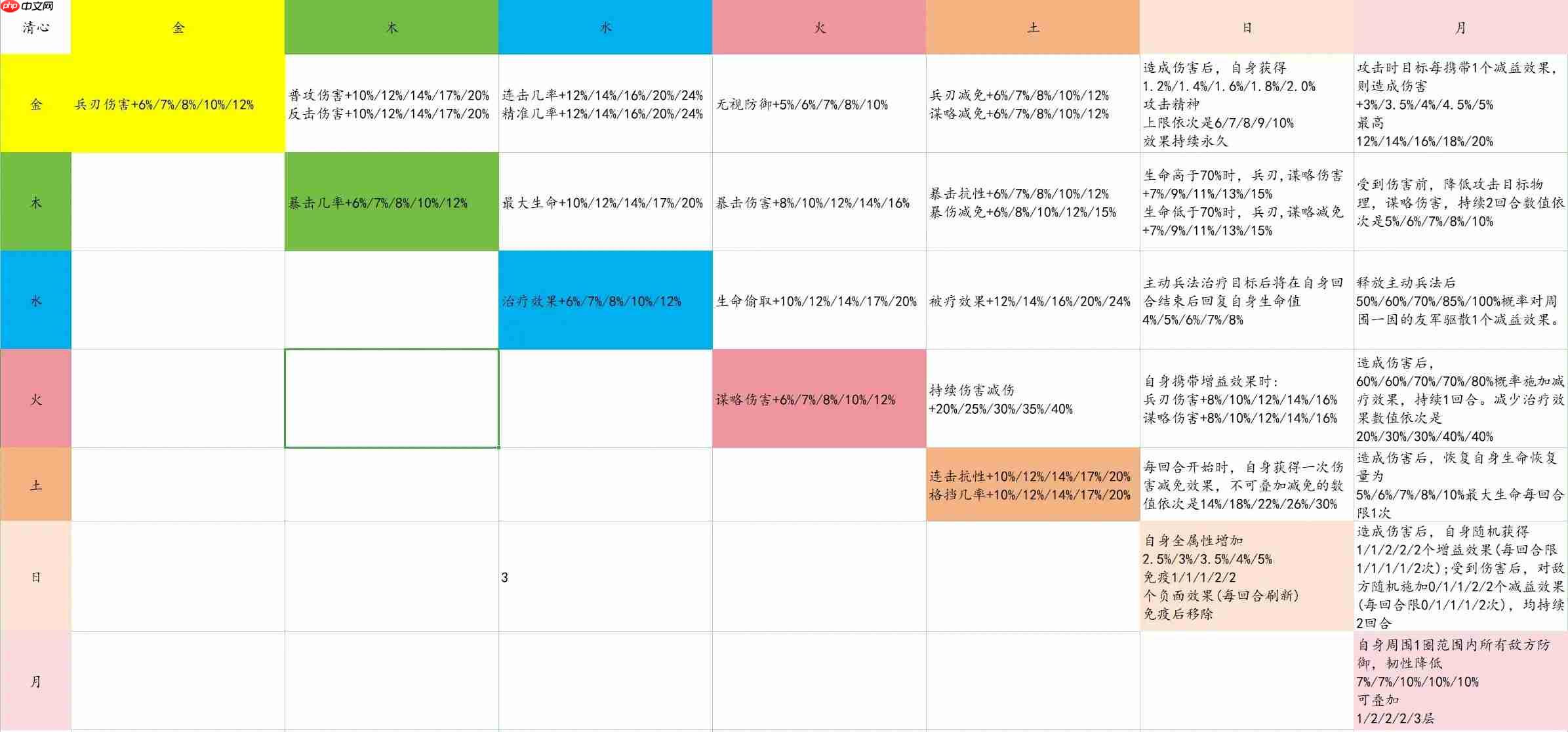 注:未列出的组合并非无效,而是优先级相对较低。例如魏延、曹仁等护卫型角色,使用金木强化反击或金金提升输出亦可,依实战需求调整即可。