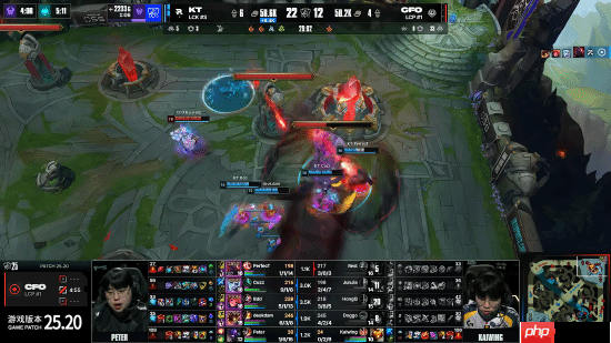 22分钟,PerfecT赛恩果断开团,Cuzz佛耶戈再度发力收割三人,KT以一换三扩大领先;